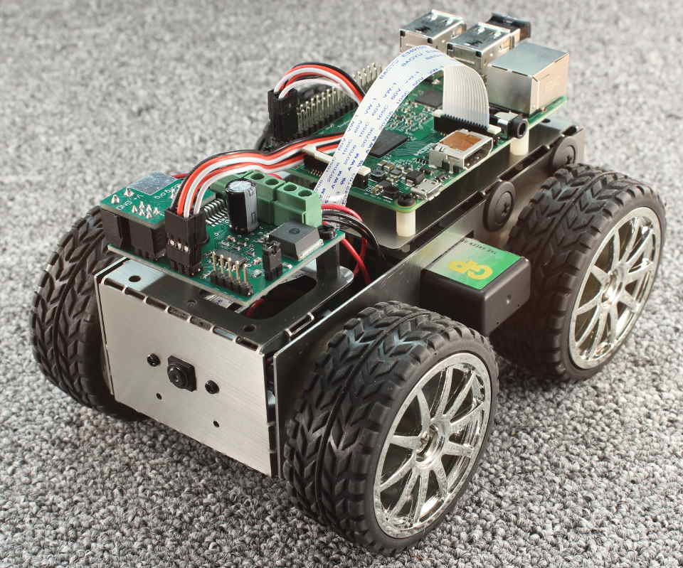 It works with the Raspberry Pi 2, model A+ or model B+, and supports mounting the Raspberry Pi camera on the front.