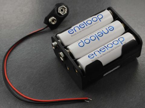 Battery holder for 6x AA batteries, with 9V style connector.