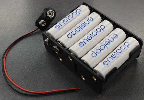 Battery holder for 10x AA batteries, with 9V style connector. Comes with matching 9V connector with wires. With 10x AA batteries, BattBorg should run for approximately 25% longer than 8x AAs. Batteries not included.