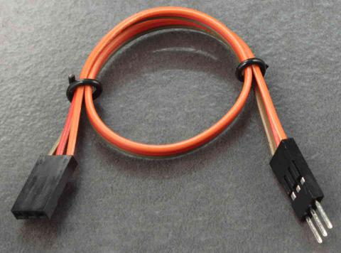 3 pin male to 3 pin female cable. 0.1" (2.54mm) pitch. Similar to a servo extension cable, but without the shroud.