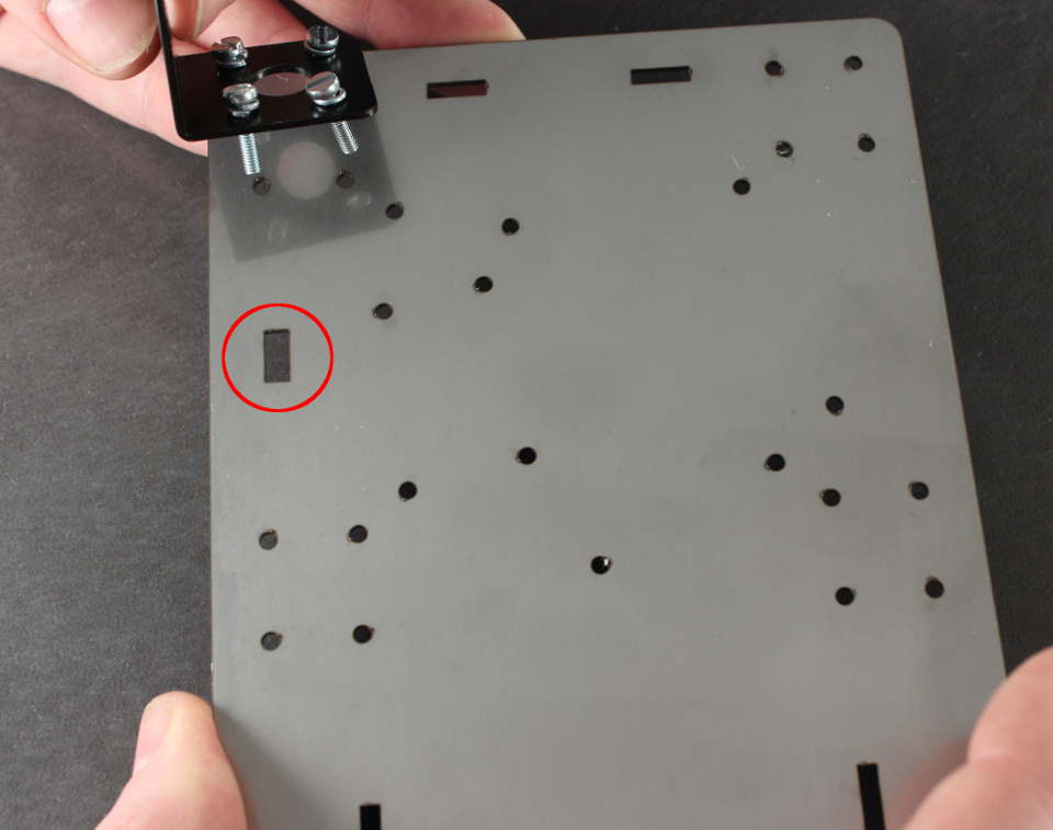 *Note It should not be difficult to slot the Perspex camera mount in to the base. If it is, check alignment carefully. The camera module should be a snug fit to minimise vibrations, but if it will not sit in the mounting holes, removing the edges of the perspex will help. You can do this with fine ~600 grit wet and dry sandpaper. It should only require a small amount of sanding. Remove the camera module before sanding!