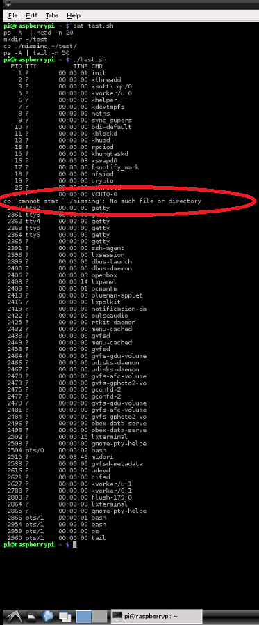 The second command with the missing file returns an error and lights the LedBorg Red to indicate a failed return code