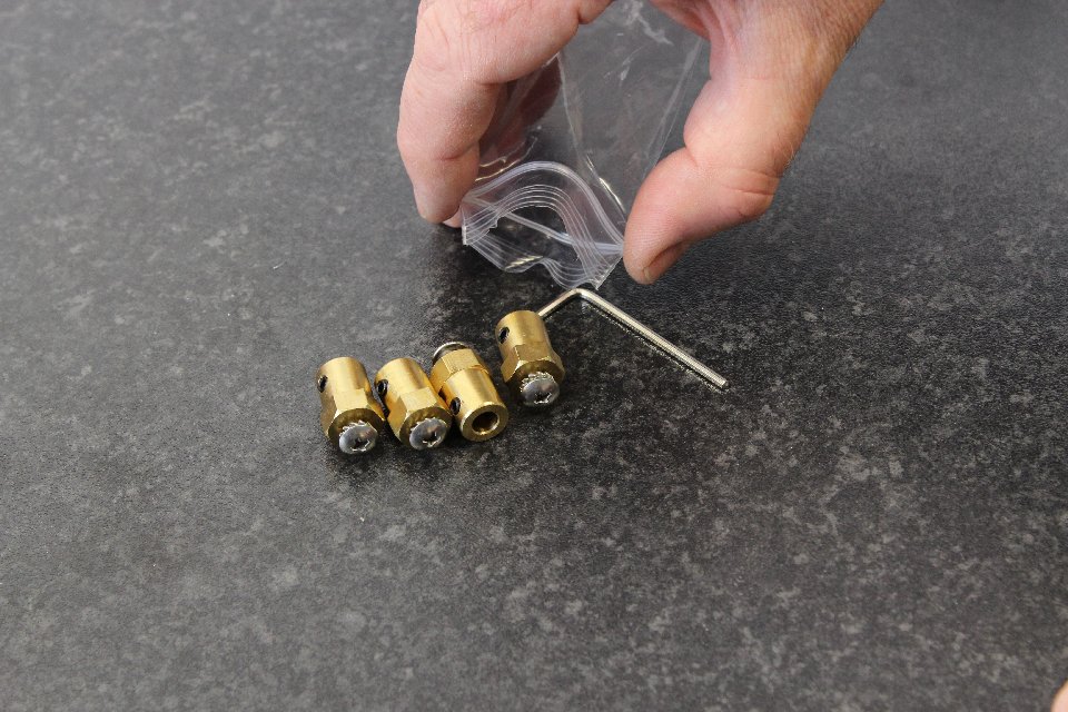 Step 18: Empty the bag with the 4 hubs and allen key.
