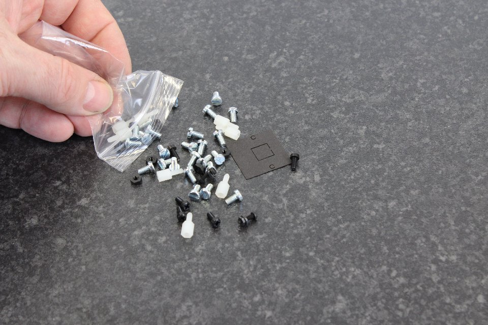 Step 2: Open the bag of screws and check to ensure you have everything.