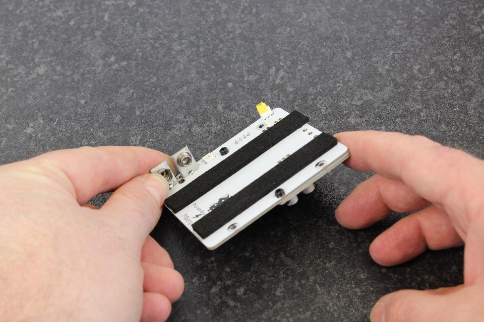 Step 71: Make sure the switch (yellow) is in the off position. Be gentle with the switch as it really doesn't take much force to switch on and off! Carefully connect the battery pack to the ThunderBorg Lid.