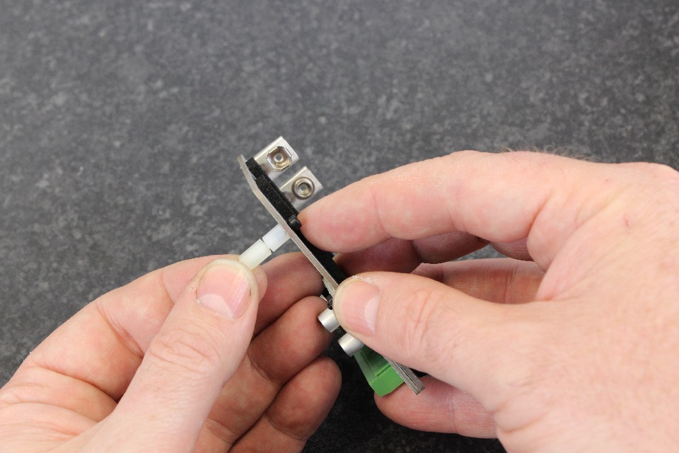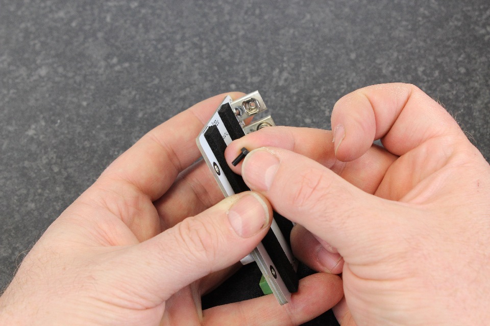 Step 49: Make sure that the wires are between the clamp and tighten. It is possible to locate the wire underneath the clamp, so double check it has grabbed both wires by the metal conductor.