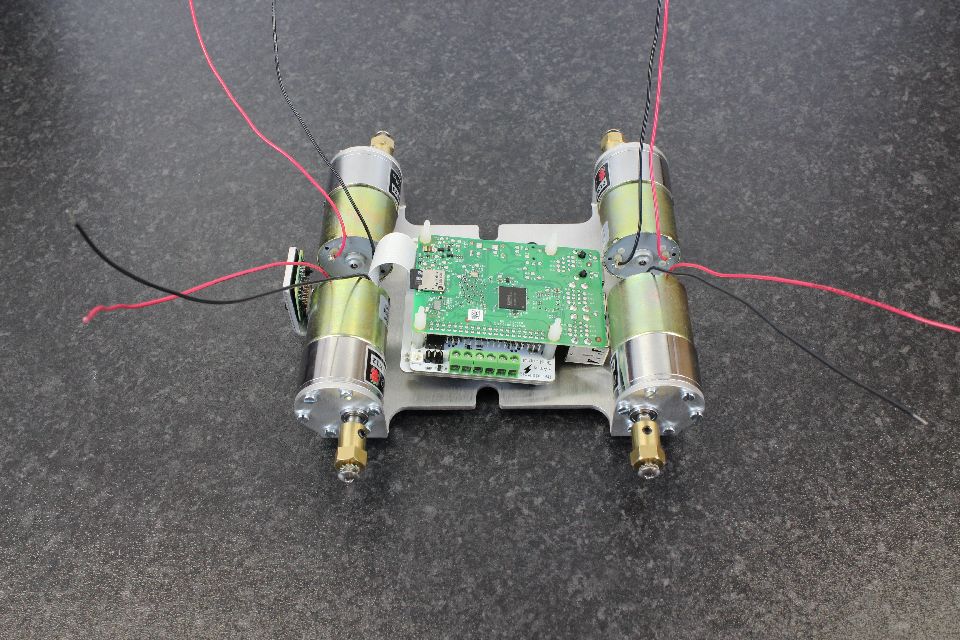 Step 62: The wires can be pushed to the side and underneath as shown (the front motors to the left, the rear motors to the right).