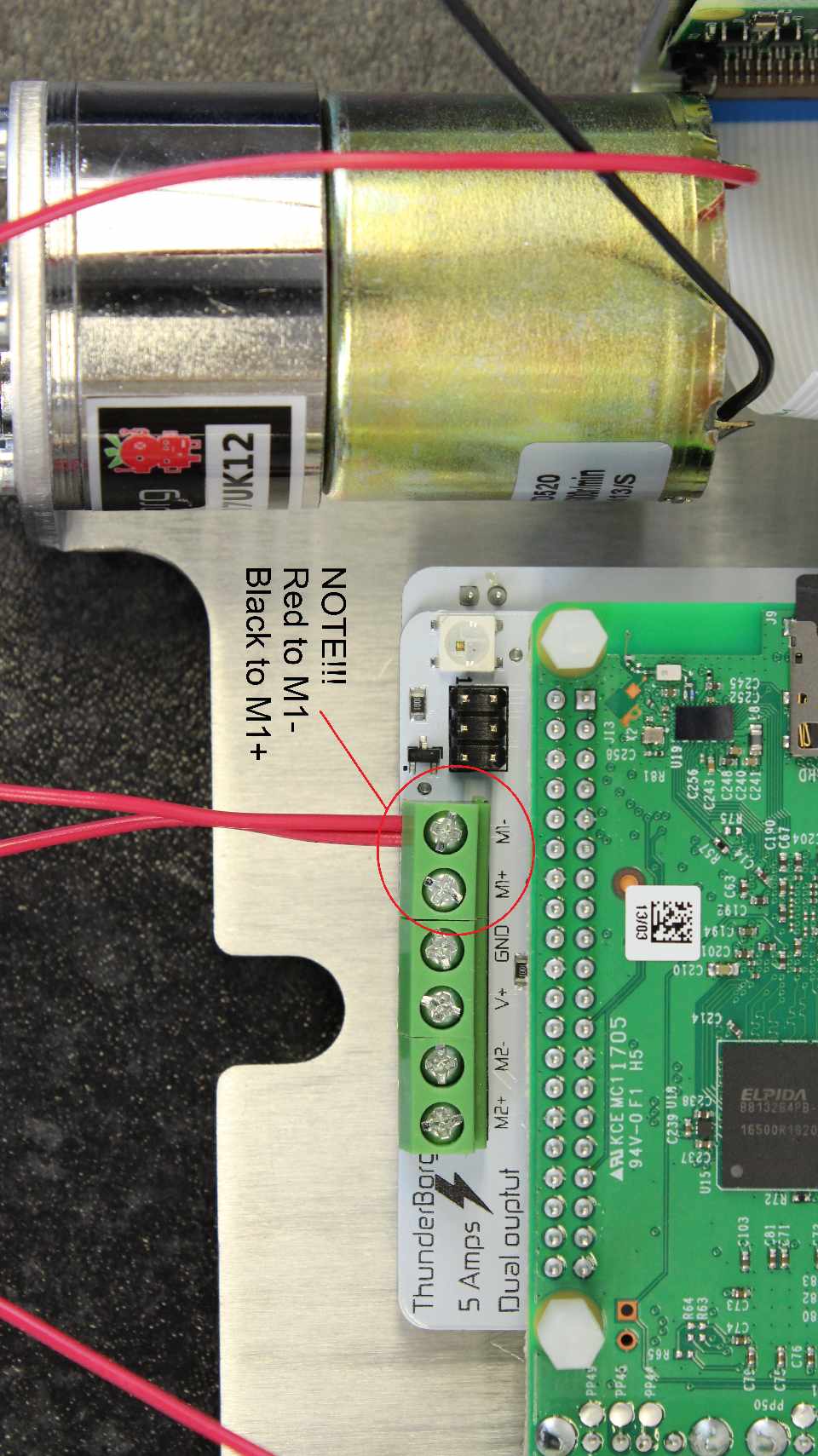 Step 48: The motors on this side are inverted in direction, so we want to connect the Red to M1-. It's not a mistake :)