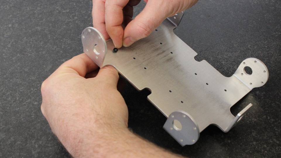 Step 5: Turn the chassis over and place an [M2.5 nylon nut] on the underside.