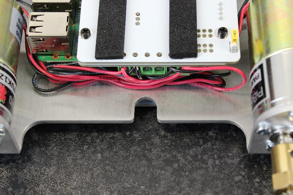 Step 63: Make sure the wires aren't in the way of the slot on the chassis as this is where our battery holder strap will go.