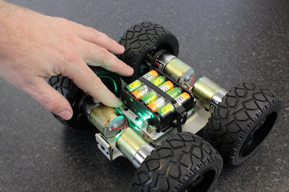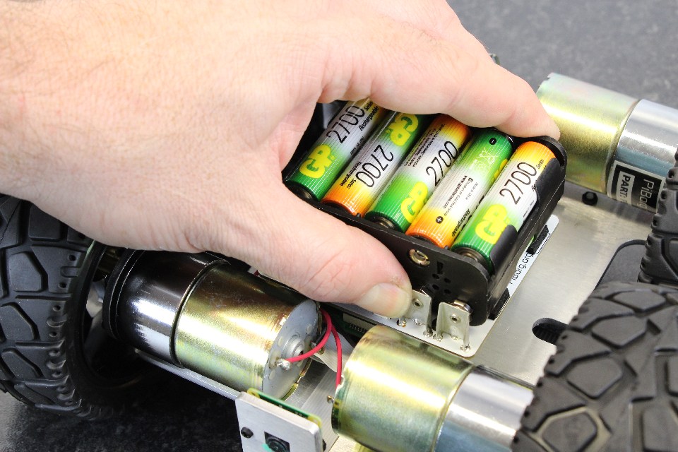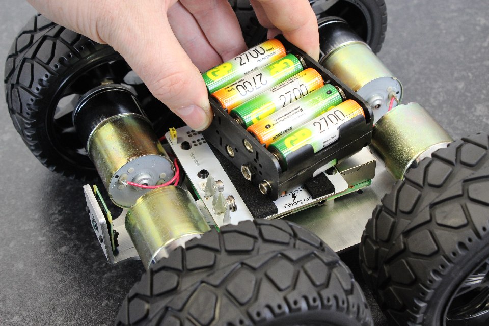 Step 76: Now you can switch the switch over to ON! The LED sequence on the ThunderBorg should go through Red, green and blue, and then it should go to voltage monitoring. Depending on your voltage monitoring setup, it should display the voltage on your battery pack. That is essentially green for charged, and red/orange for flat.