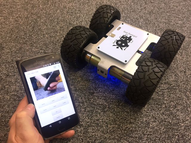 One of the best things about building your own robot is being able to control it remotely. Using MonsterBorg with a Raspberry Pi camera you can drive around and see what the robot sees from a smart phone, laptop, or even via the web!
