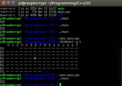 Also, i2c_read_word_data prints out 218 in any case for the UltraBord motorcontroller.