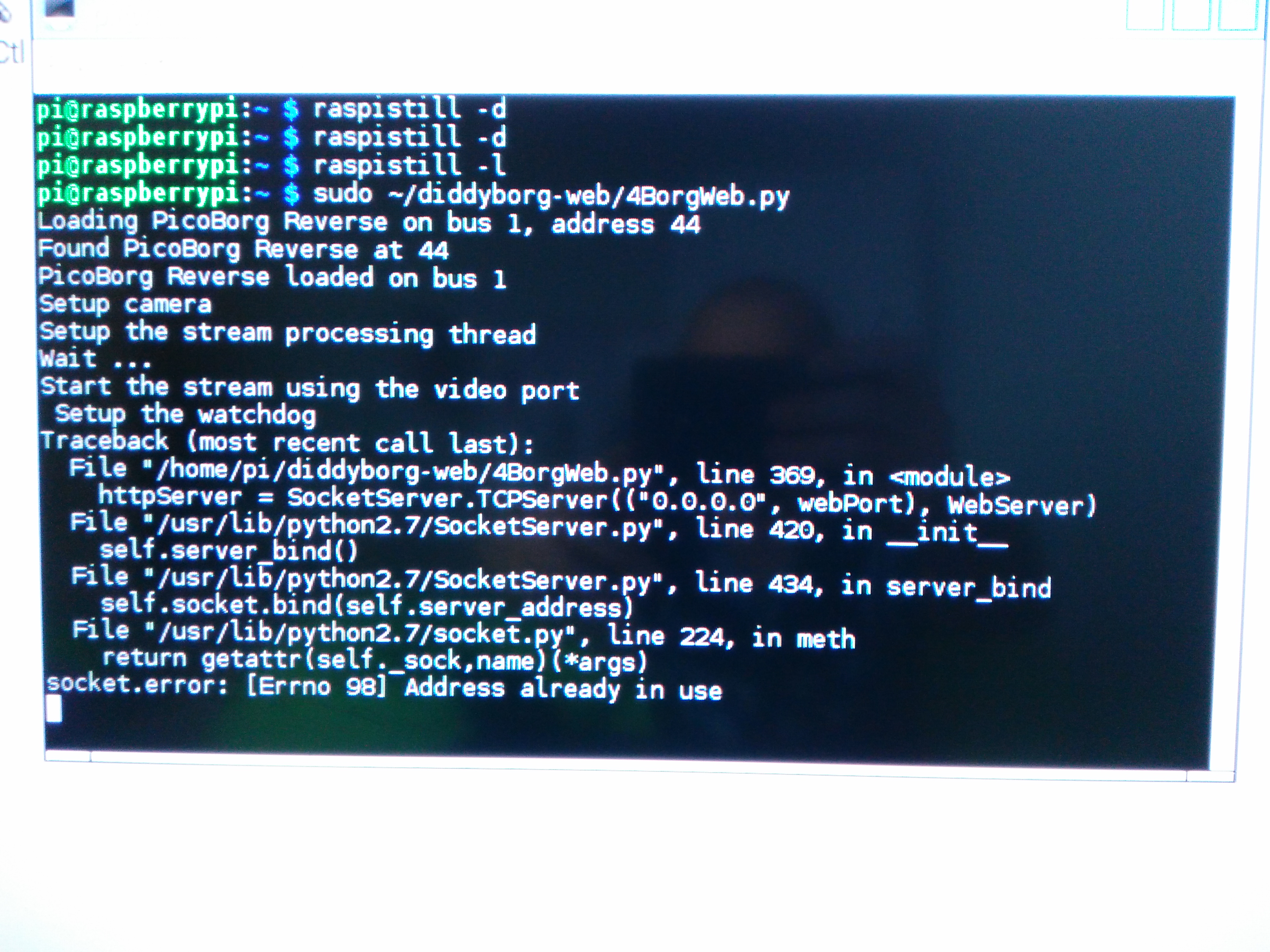 This error means that the script cannot run as the web page for the Raspberry Pi because something else already is.