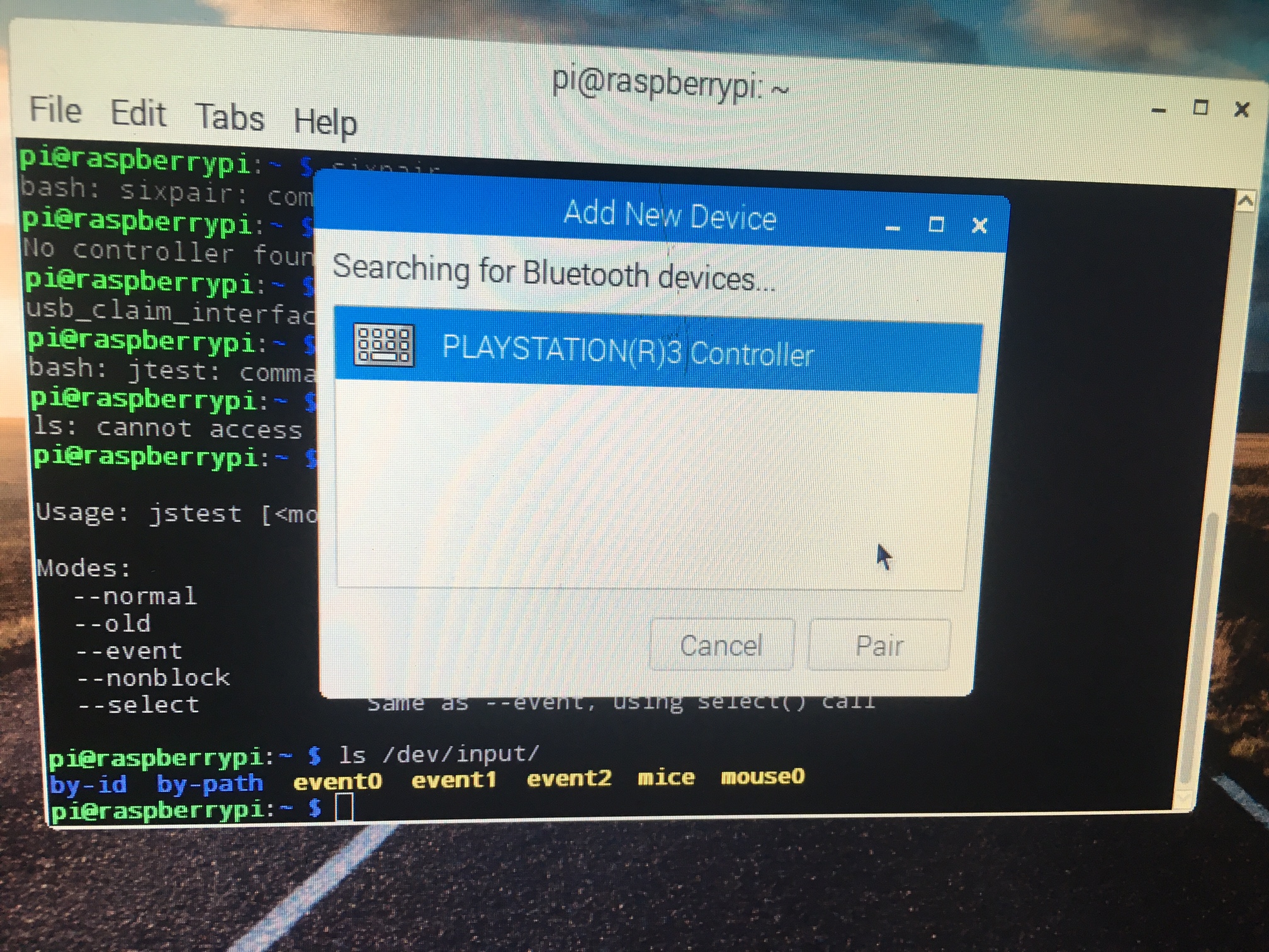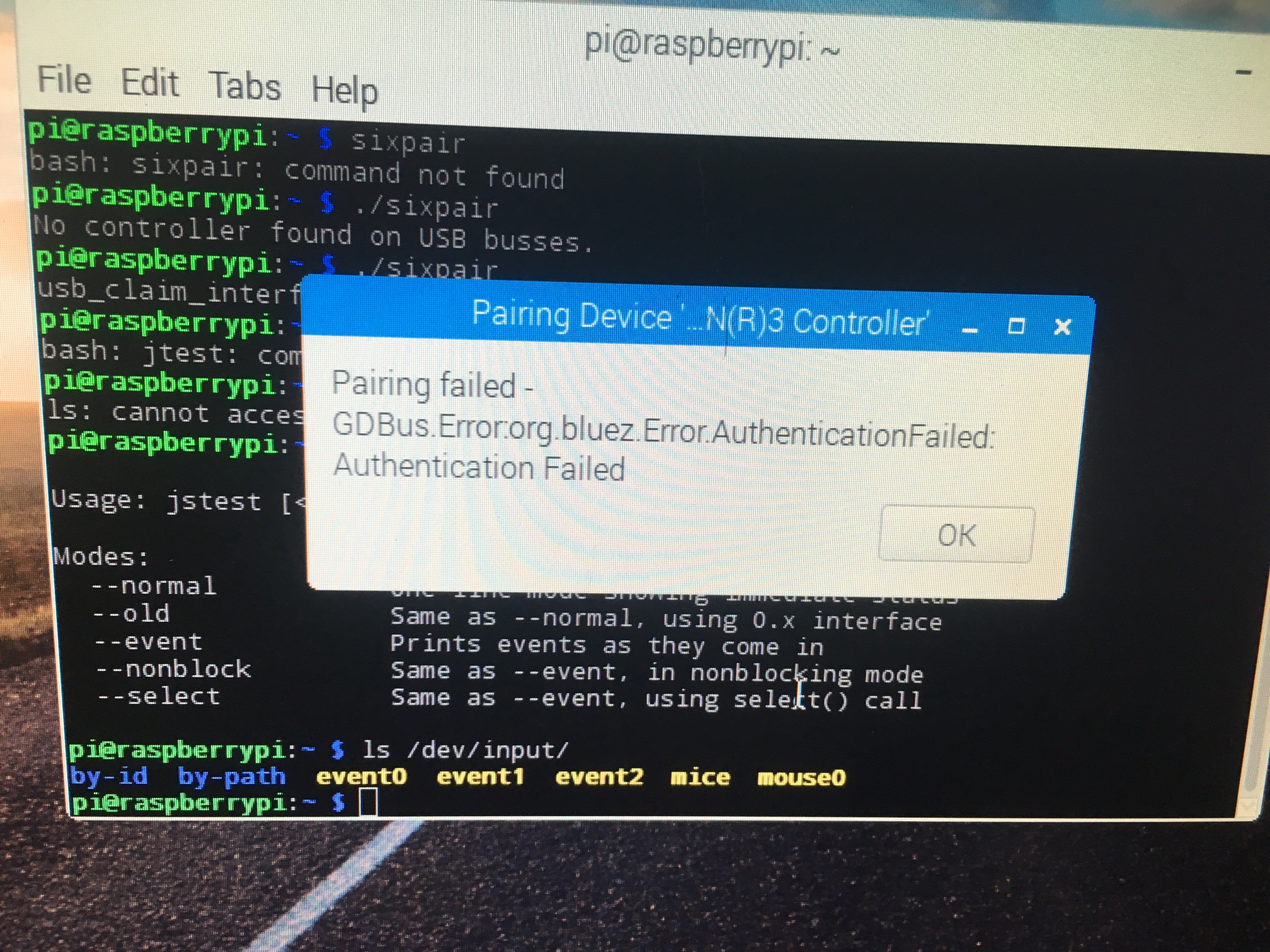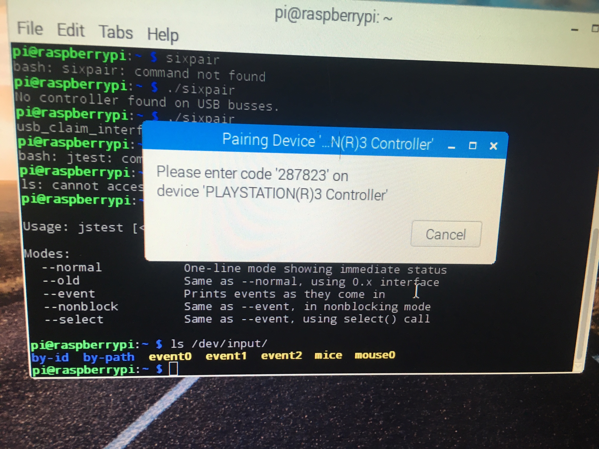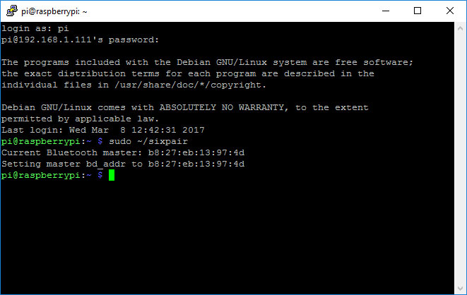 sudo ~/sixpairIf you could take a screenshot of the output so we can check the command worked correctly.