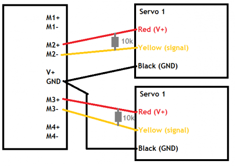 Is it possible to connect 2 mini servos on M2+ M2- {motor 2} & M3+ M3- {motor 3}?