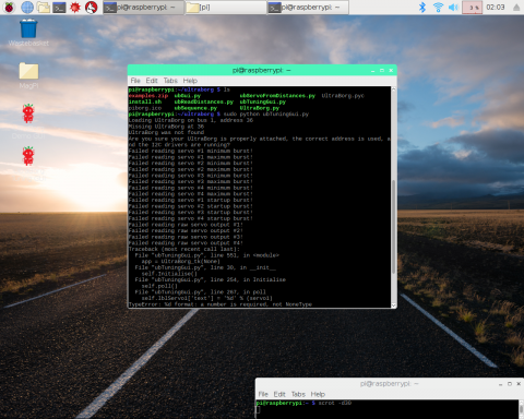 The first error is that the script failed to communicate with the UltraBorg, the same problem you were having with the Diablo before.
