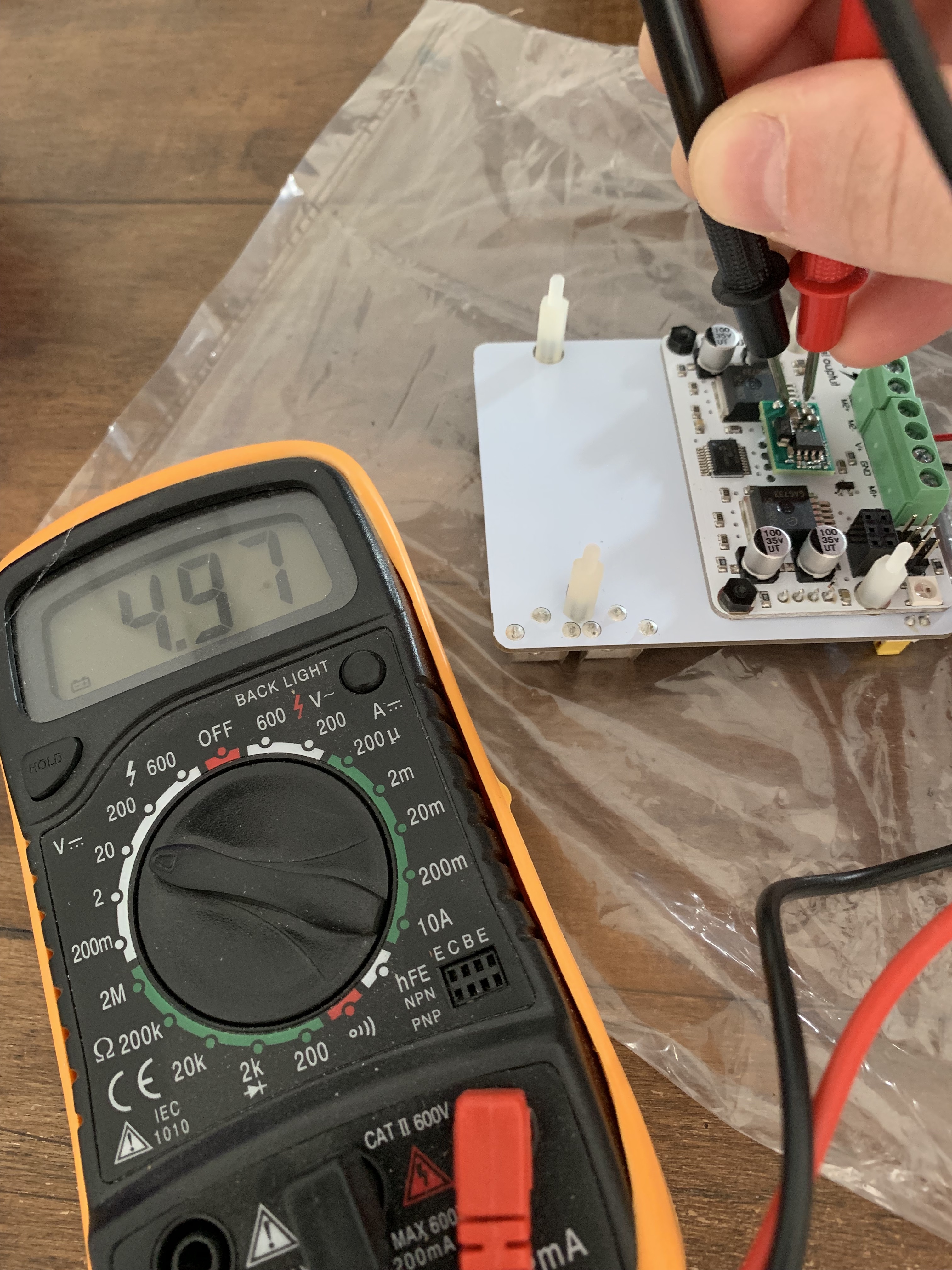 On initial inspection of the board I couldn’t see any obvious fault, I was looking for a melted component. First task was to pull the pi off the board and check that all works, I did this by powering the pi independently, it was fine. After reading this post from theborg, I then disconnected all the motors and decided to take another look at the controller, suspicion was that the DC-DC converter was dead. Hooking up a normal 9v battery and using a multimeter I could confirm DC-DC converter was fine; 9v going in and 5v coming out (phew!!). Inspecting further I could see some track was exposed and broken, figuring I had nothing to lose (would take days for a new controller board to be delivered to Germany), I soldered a jump cable from the capacitor to the pole which the track was seemingly connected to - it seemed simpler than trying to fix the track, I don’t have the pro equipment required for intricate jobs like that, and I wasn’t even sure if this would be enough to save the board. I am happy to report though, that after plugging in the pi, lights came on and the board was working!