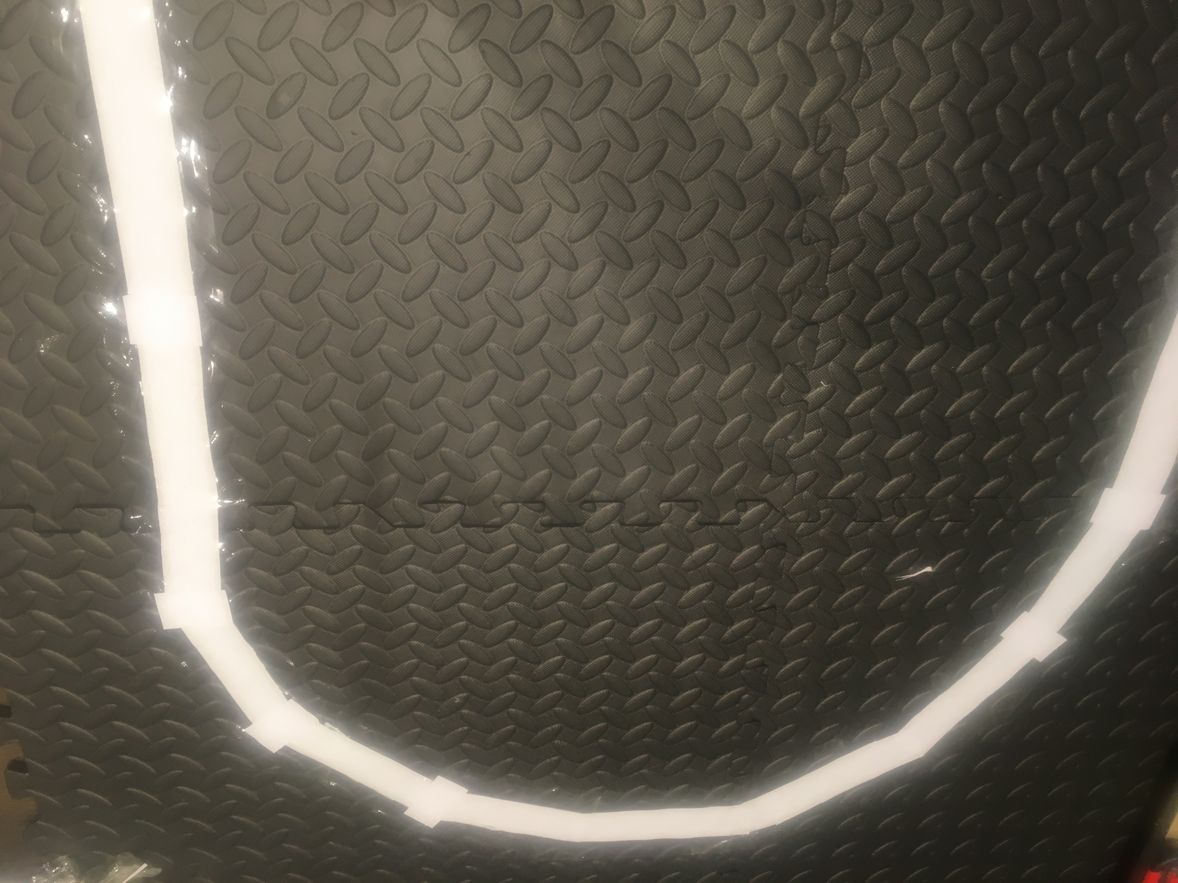 I am using the monsterborg self-drive code in order to drive my robot around this track (attached to this comment). I have been tweaking the values for a long time, yet I cannot seem to find any values (for the PID loops) that allow my robot to drive around this curve. My track is roughly 20mm and I think my camera is mounted accurately. Could you please possibly give me some advice or guidance on how to get the robot to follow this track? What currently is happening is that it follows the line when it is straight, yet when the white line curves, the robot loses track of it and comes to a halt.