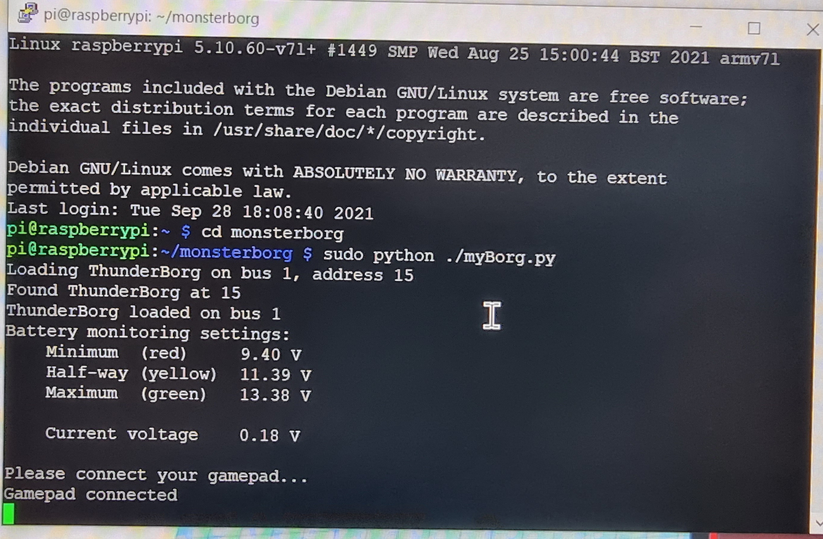 2) Connect the original battery pack that came with MonsterBorg directly to the lid of the controller and power the PI separately (connecting only 4 pins between the controller and PI) :