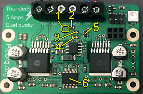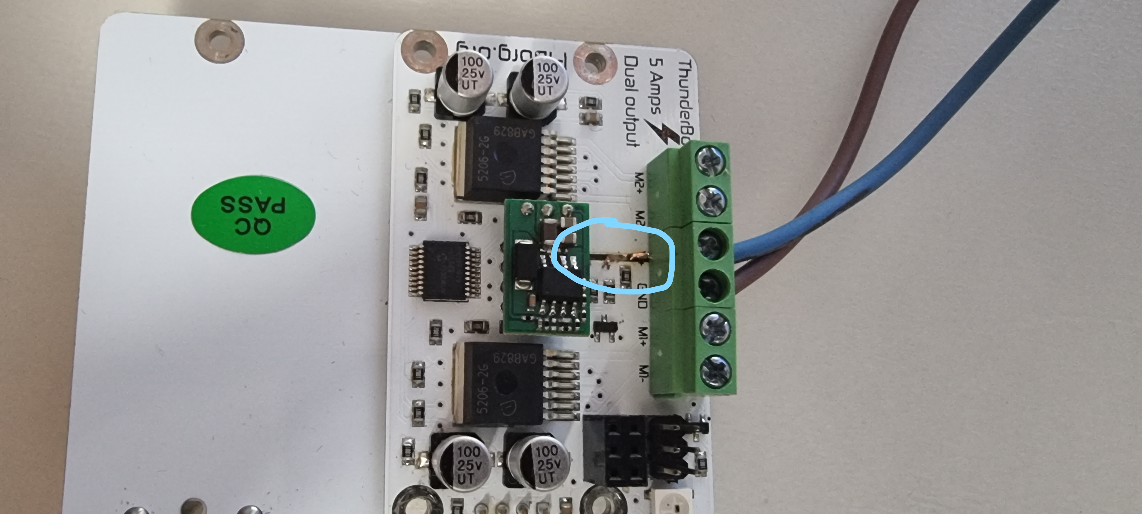 1) Photo of ThunderBorg controller with highlighted visual sign of the problem.