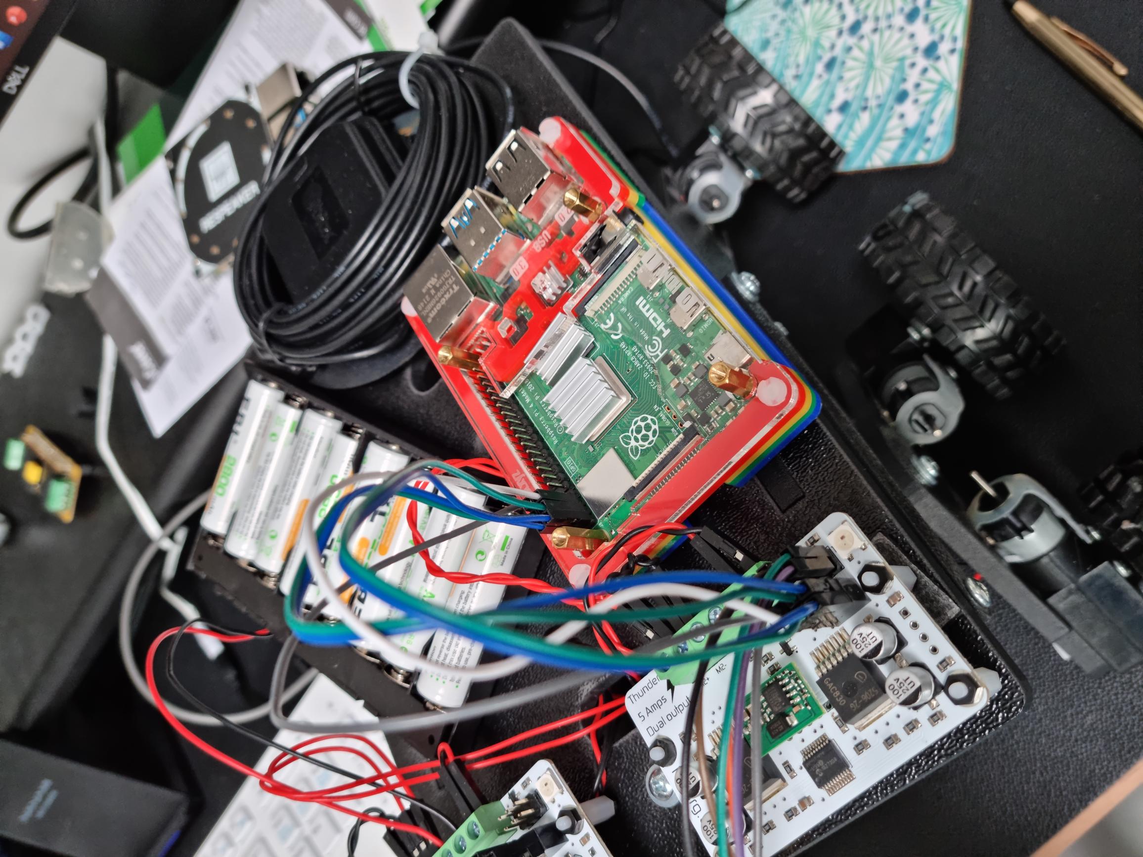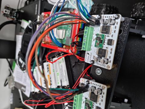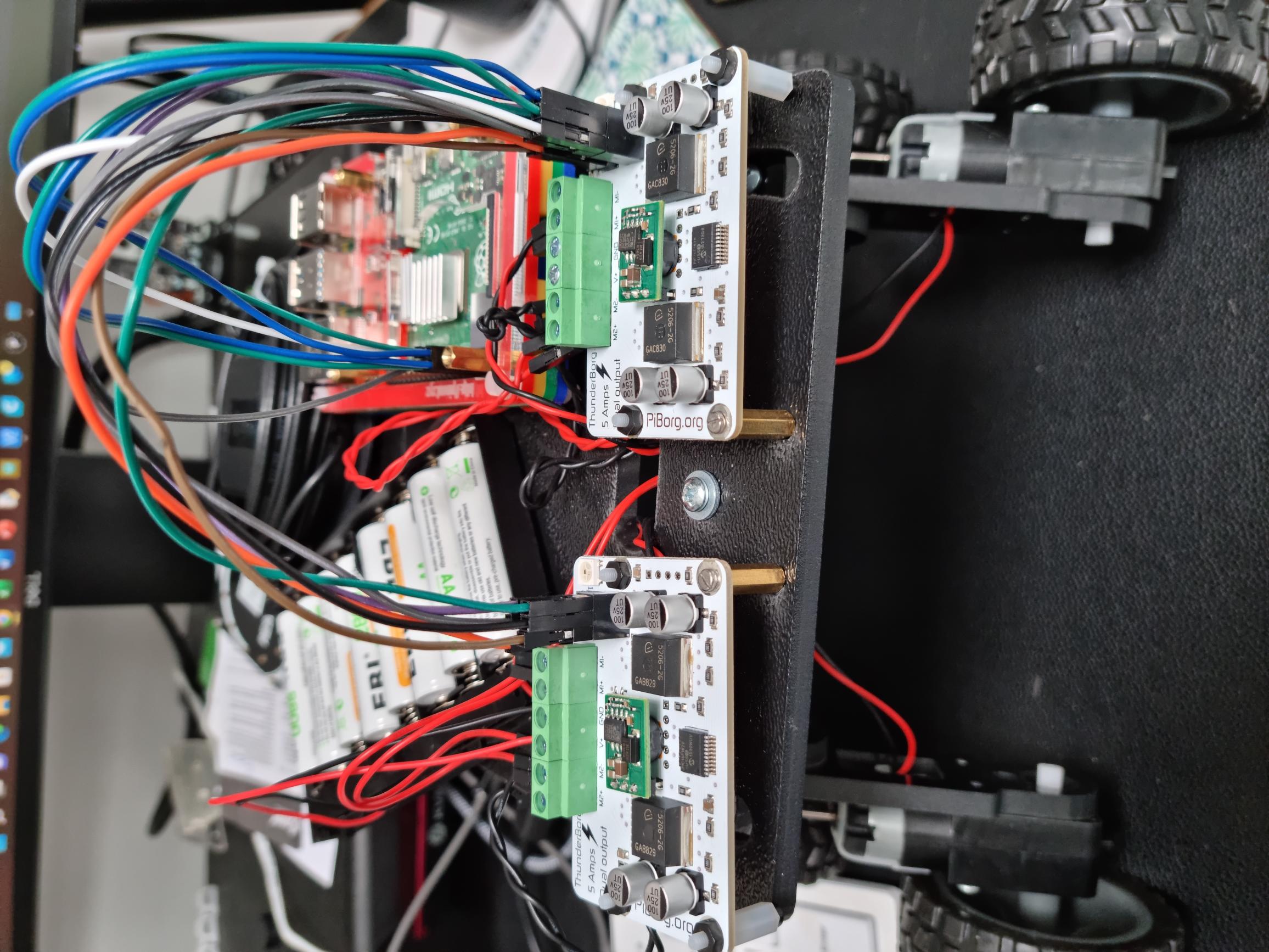 I have built a robot using a RasPi 4, 2 ThunderBorg motor controllers and 8 AA batteries. Each motor controller works fine when tested individually, but when both are connected to the Pi only the controller that is connected to the battery pack seems to be working.
