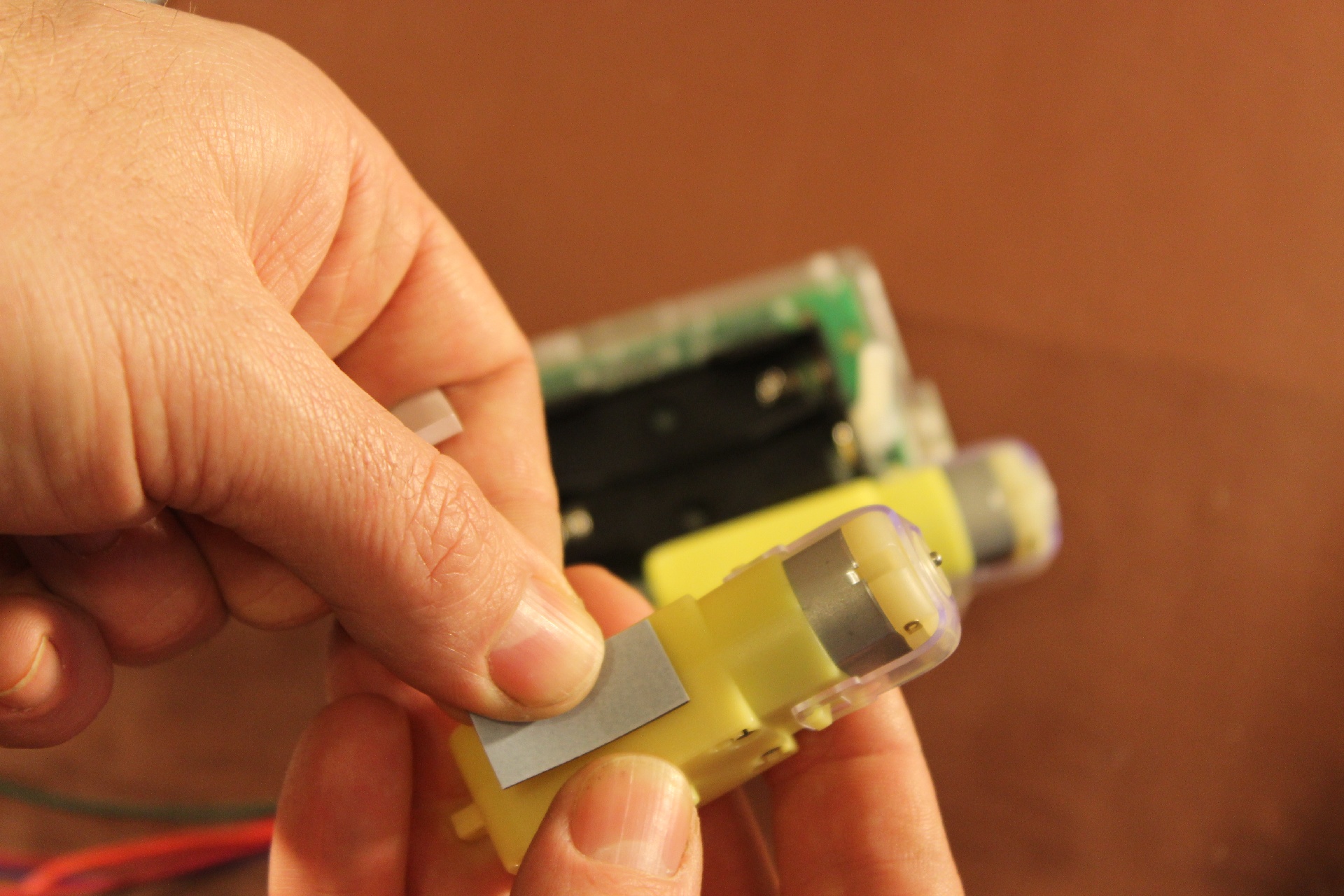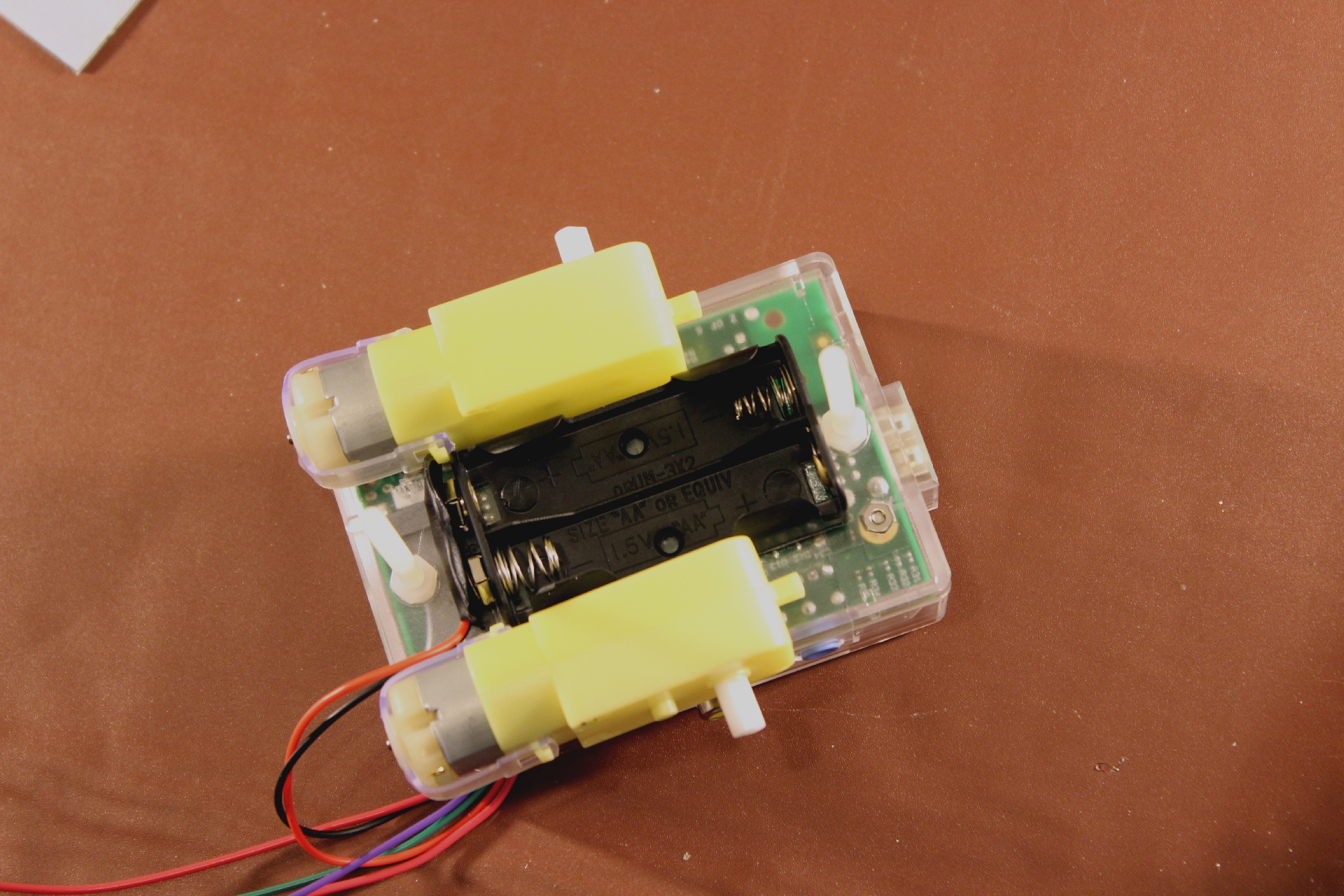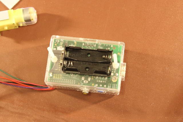 Once you are happy with the location of the battery pack and motors, use double sided tape or glue to secure them to the case.