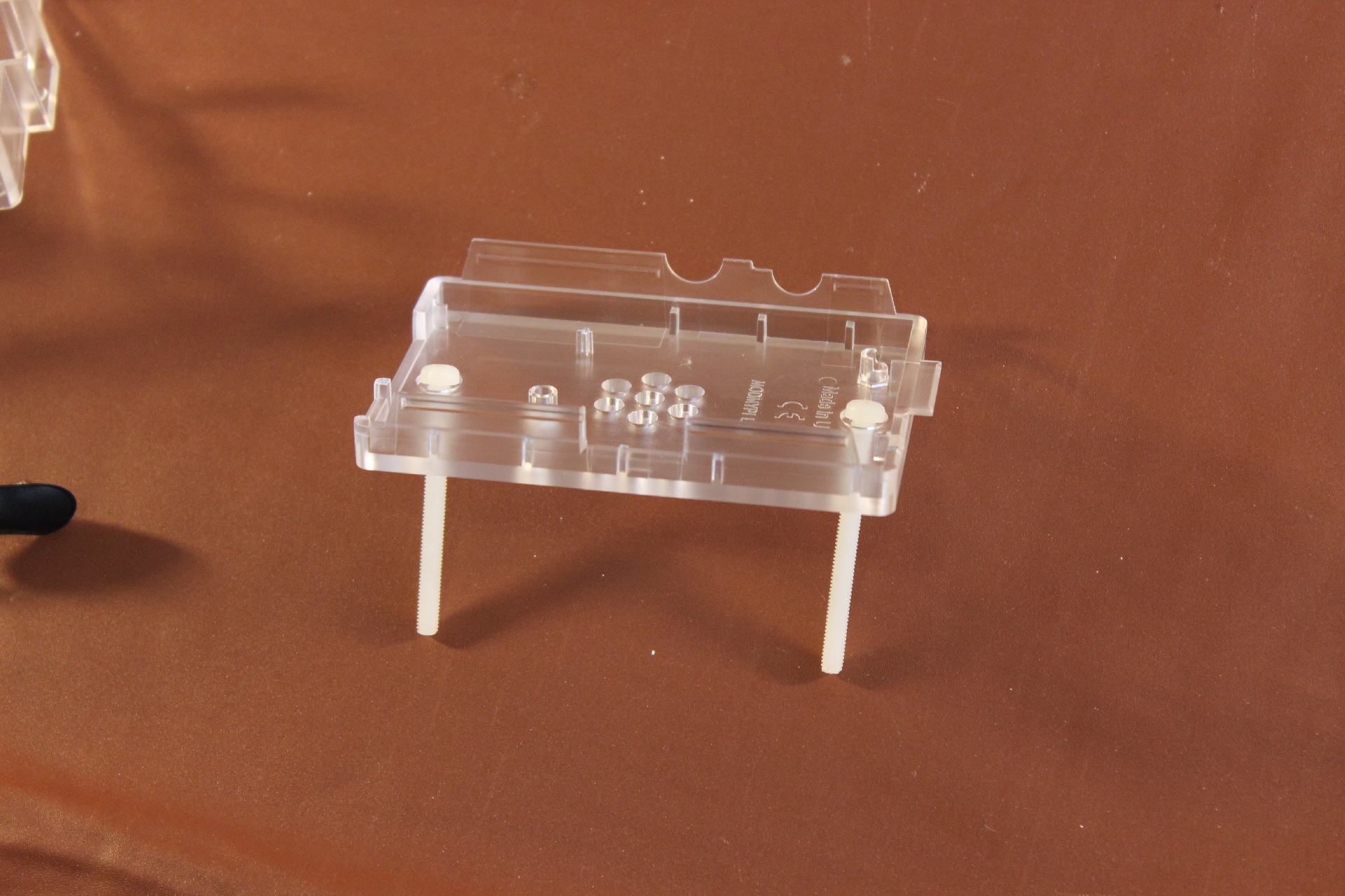 Fit the long nylon screws, and secure them with the nylon nuts. You can optionally also mount your Raspberry Pi to the case using the metal screws.