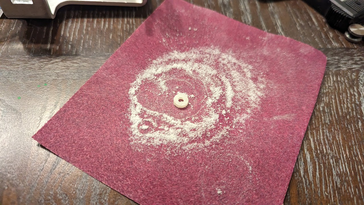 I didn't like how the camera mounted crooked, so I stacked washers as shims/spacers and found I needed ~2mm of space. I sanded 2 nylon spacers to 2mm.