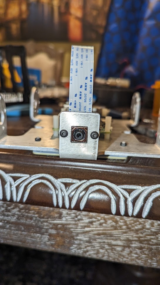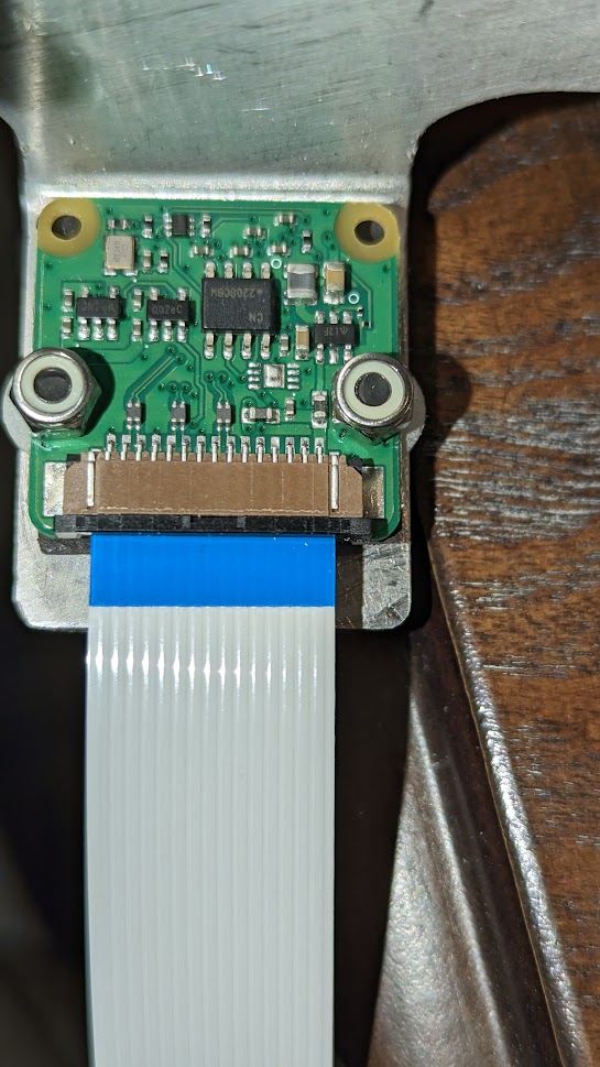 I very carefully enlarged the holes on the Pi Camera to 3mm. You can see on the board, there is clearance.