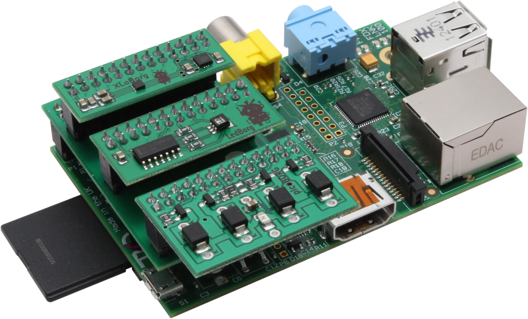 Raspberry Pi, XLoBorg, PicoBorg, LedBorg and PiCy purchased seperately.
