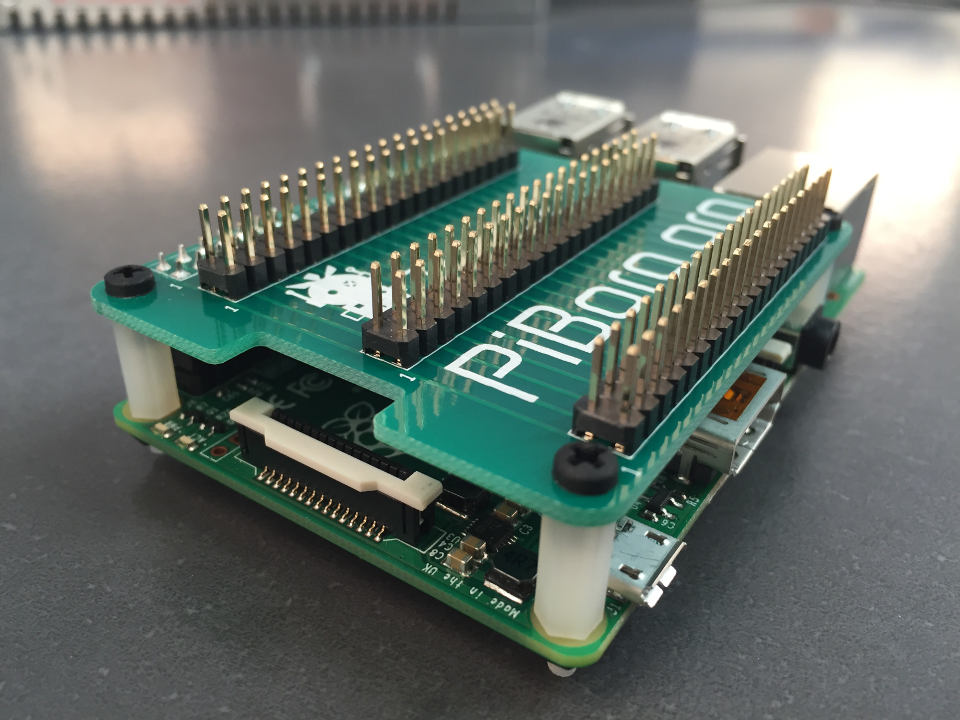 Mounts nicely on a Raspberry Pi B+, A+, Raspberry Pi 2 and Raspberry Pi 3.