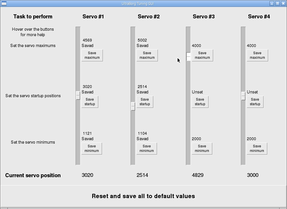 See the UltraBorg servo tuning instructions for a more detailed description of how to use this GUI.